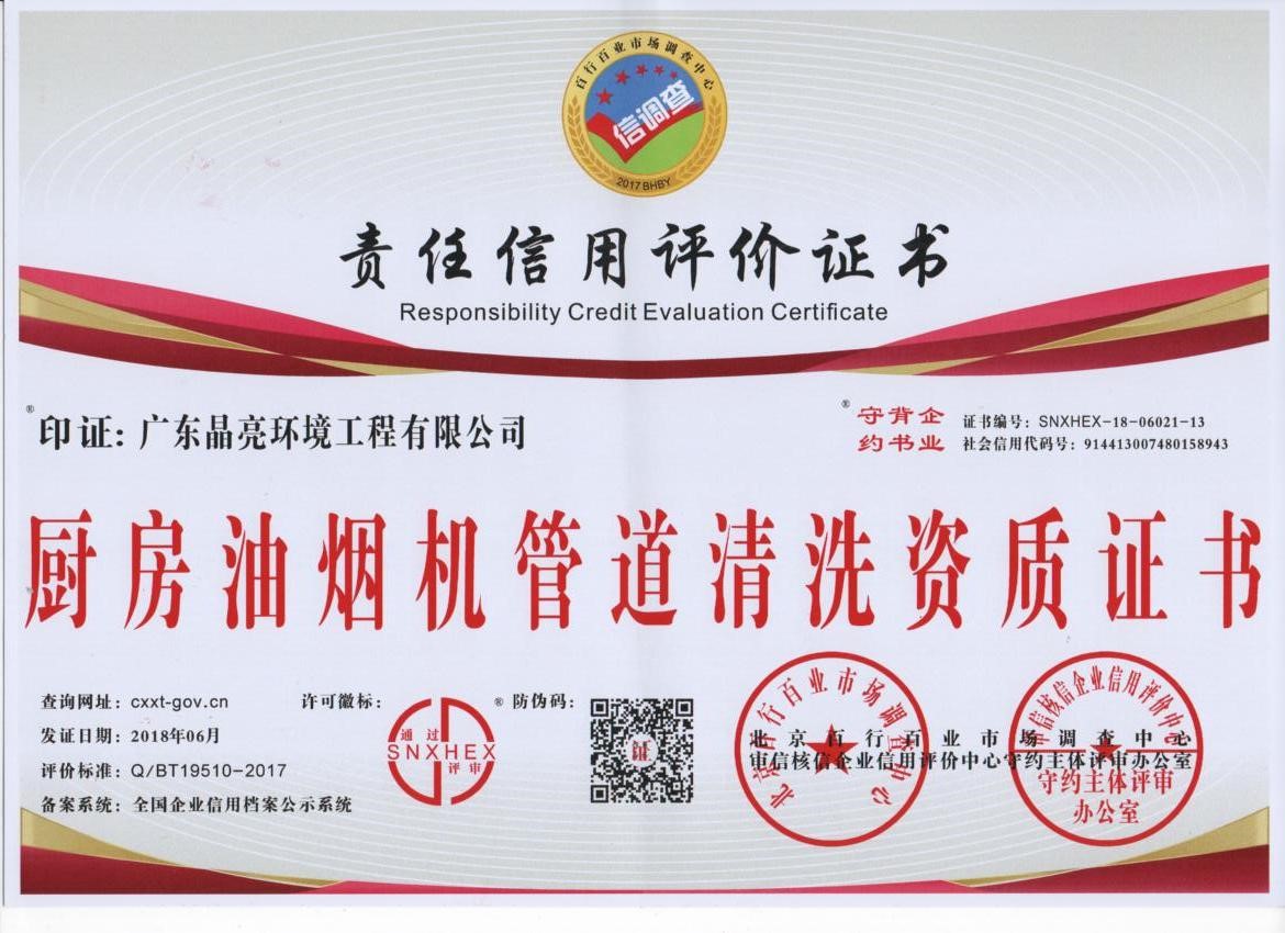 責(zé)任信用評級證書