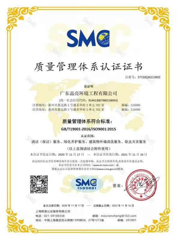 質(zhì)量管理體系證書